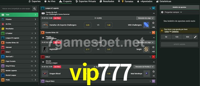 O vip777 oferece uma grande seleção de opções de apostas em e-sports com probabilidades competitivas